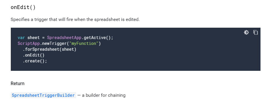 onEdit() 함수는 스프레드 시트를 편집 할 때 발생하는 트리거를 지정합니다.