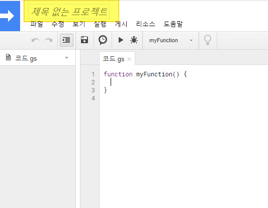 그리고 기본적으로 있는 function myFunction() 은 삭제해 줍니다.