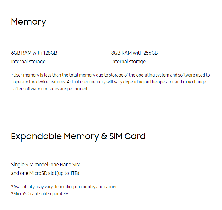 | Memory + Storage | 6GB + 128GB or 8GB +256GB , MicroSD (Up to 1TB) | |