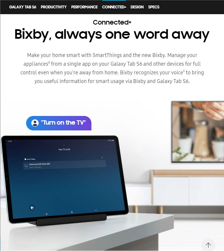 '갤럭시 탭 S6'는 16:10 화면비의 10.5형 슈퍼 아몰레드 디스플레이와 하만의 프리미엄 오디오 전문 브랜드 'AKG'의 음향 기술·돌비 애트모스(Dolby Atmos®)로 완성한 4개의 스피커를 탑재해 향상된 엔터테인먼트 경험을 제공한다.