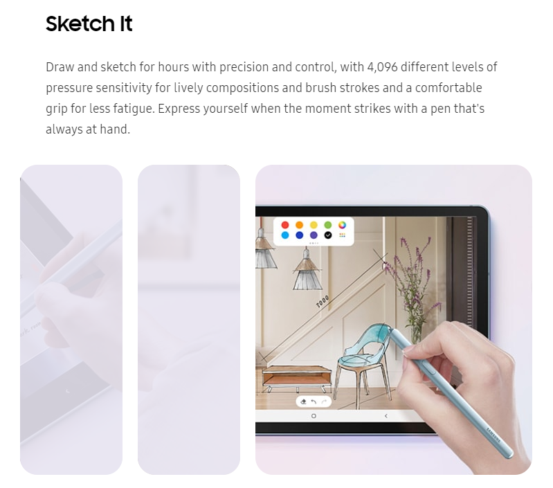 사용자가 태블릿을 손에 들고 있지 않아도 'S펜'으로 사진이나 영상을 촬영할 수 있으며, 멀티미디어 콘텐츠 제어도 가능하다.