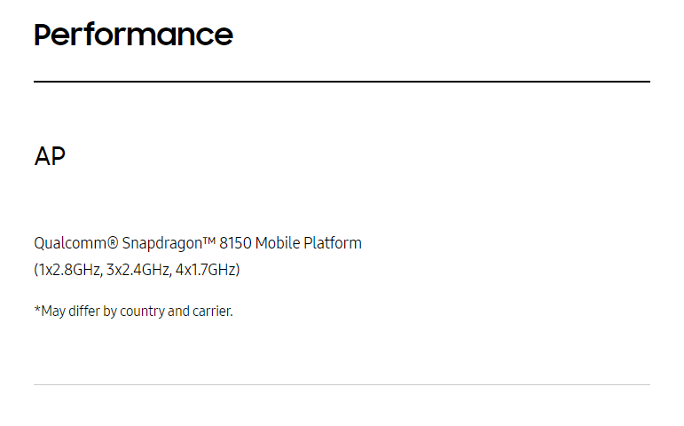 | AP | 7nm 64-bit Octa-core processor (Max. 2.8 GHz + 2.4 GHz + 1.7 GHz) | |