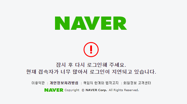 네이버가 접속자가 너무 많아서 로그인이 지연되고 있다고 합니다.