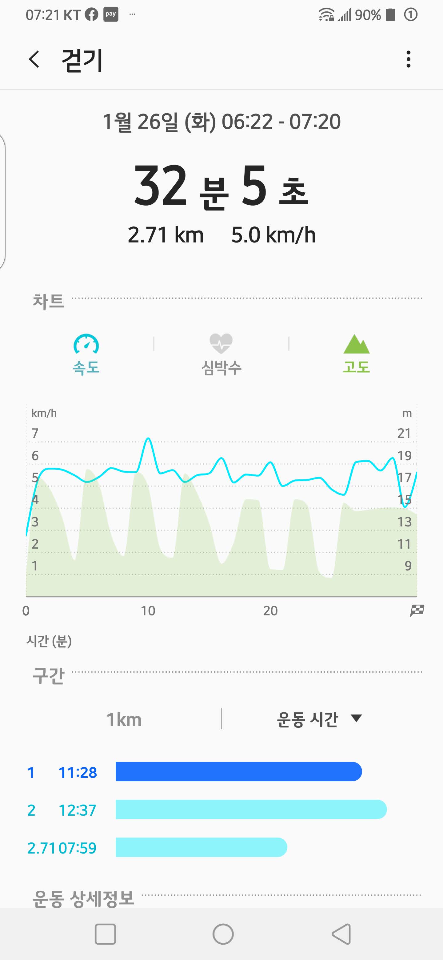 기록을 보면 되지만 같은 운동시간에 600미터정도 덜 걸었다.
