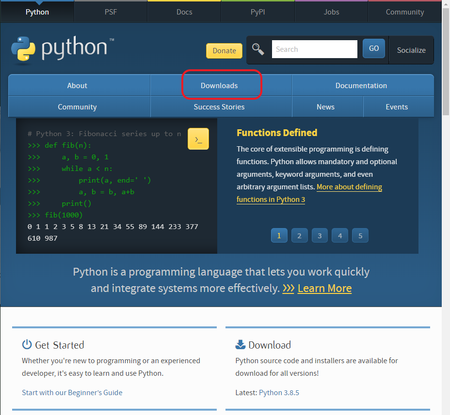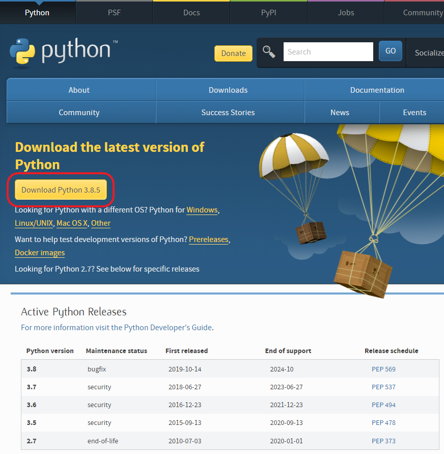 파이썬을 설치하려면 파이썬이 있는 곳으로 가야한다.
