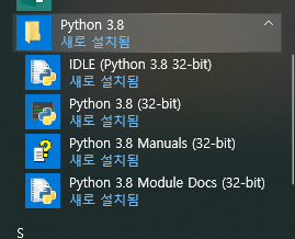 윈도우키를 눌러 P 로 가보면 Python 3.8이 설치되어 있는것을 알수 있습니다.