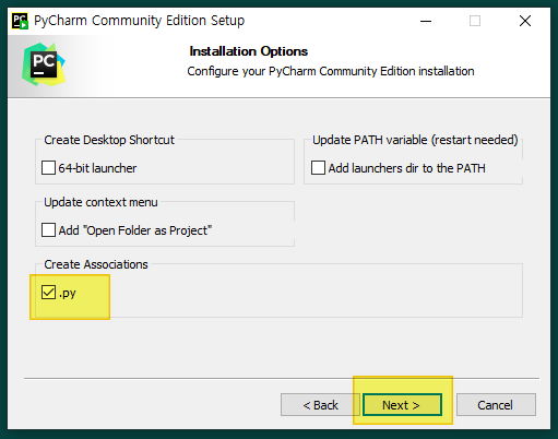 그냥 NEXT만 하기 뭐 해서 .py 체크하고 NEXT