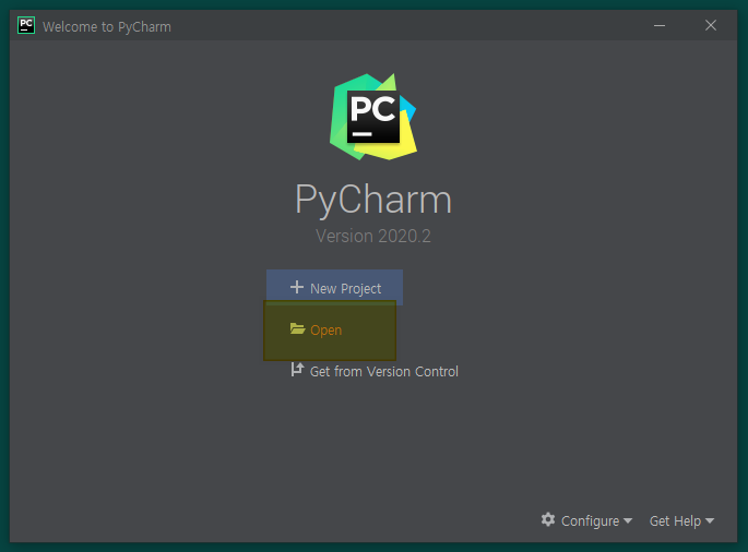 짜잔.., 드뎌 파이참의 메인 로고가 나왔어요.