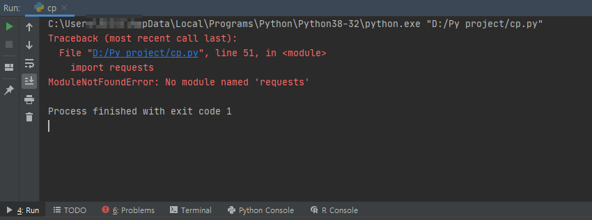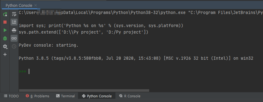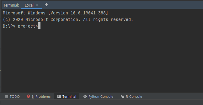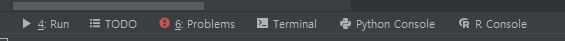 Run, TODO, Problems, Terminal, Python Console, R Console
