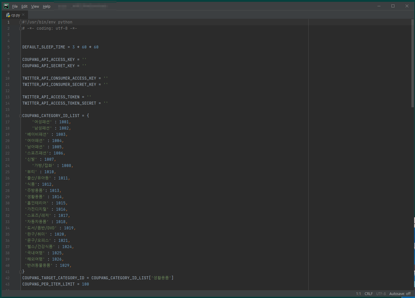 지난번에 파이참을 설치하고 cp.py 파일을 더블클릭해서 열었습니다.