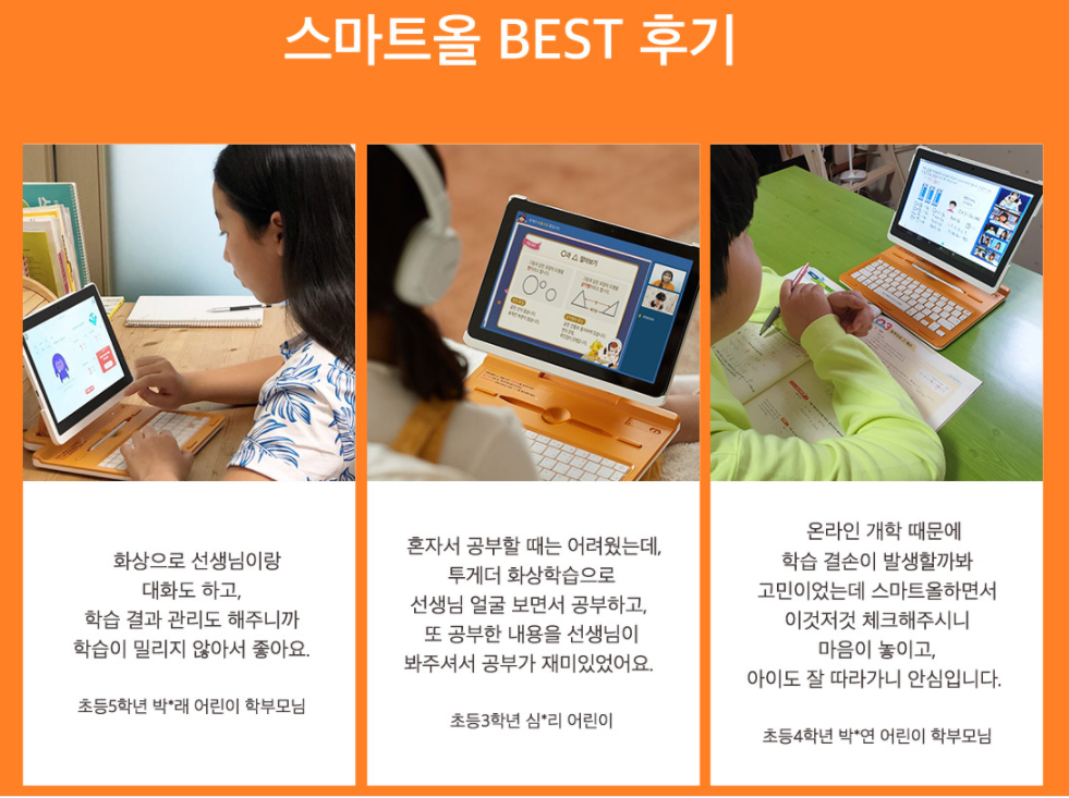 - ‘진짜’ 1:1 화상학습 : 스마트학습기 중 주2회 45분의 진짜 1:1 화상학습은 스마트올 뿐!