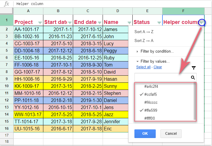 How To Filter Rows Based On Cell Color In Google Sheet?