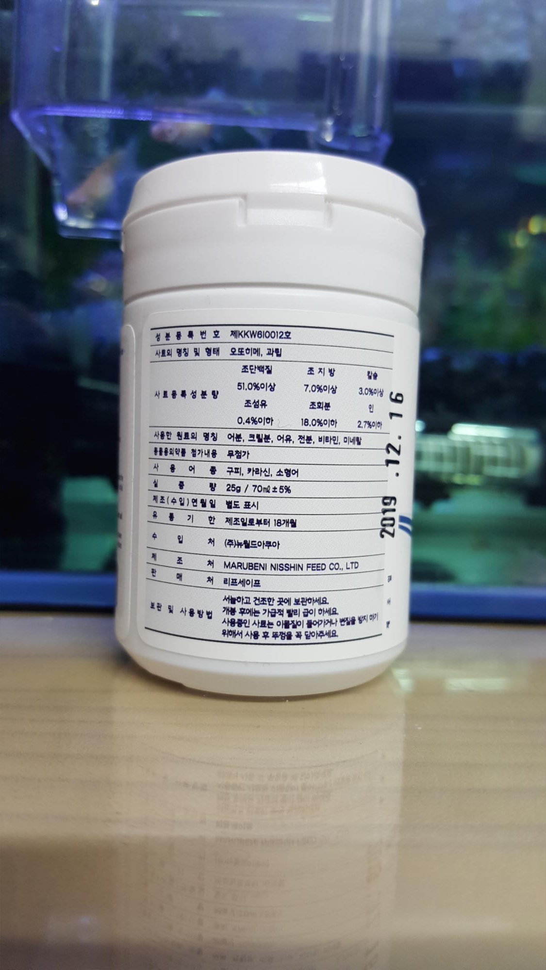 사장님 : "손으로 비벼서 주면 분진처럼 작게 부셔져요 치어들도 잘 먹어요, 어미들은 그냥 줘도 되고, 수족관 구피들은 이거로만 키우고 있어요. 냄새도 없고 좋은단백질로 되어있어서 소화도 잘되요"