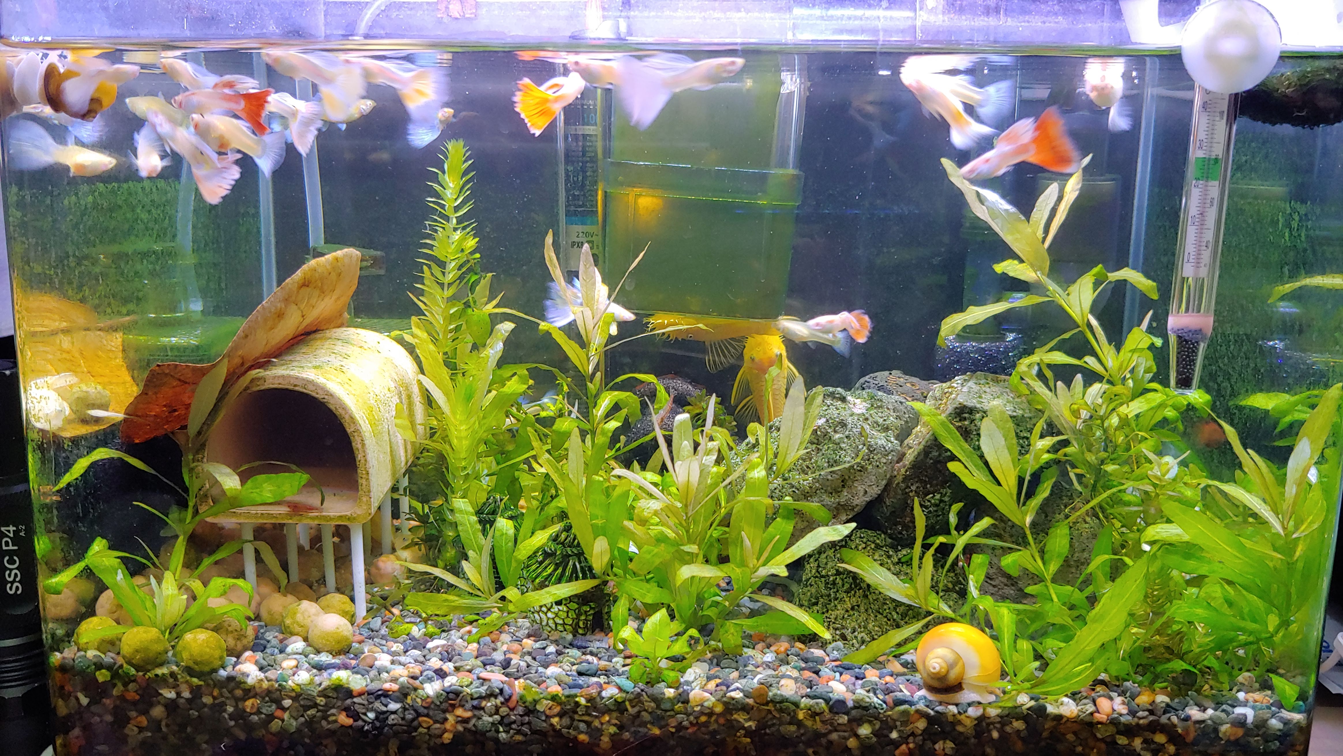 민물달팽이 애플스네일 구피, 플래티, 안시, 생이새우 합사 했습니다.