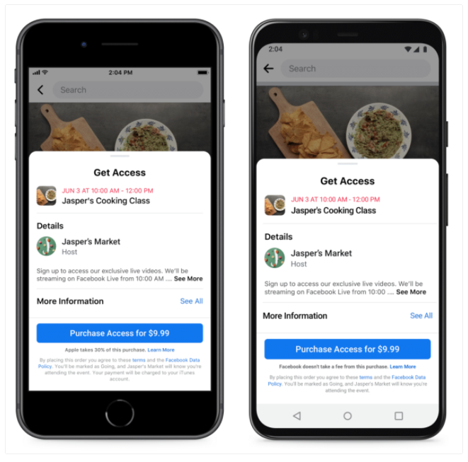그러나 소셜 미디어 플랫폼은 iOS 앱을 통해 판매되는 티켓으로 인해 Apple의 App Store와 약간의 어려움을 겪고 있습니다. iPhone 앱에서 구매 한 경우 기업은 Apple의 30 % App Store 세금으로 인해 티켓 판매의 70 % 만 징수 할 수 있습니다. 잠시 편집 할 수 있다면 : 아야.